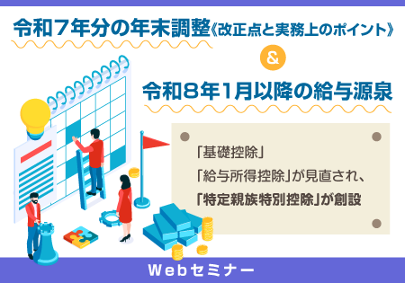 本Webセミナーでは、令和7年分の年末調整に関する「基礎控除」や「給与所得控除」の見直しなどの重要ポイント、また、新たに創設された控除制度「特定親族特別控除」について解説します。