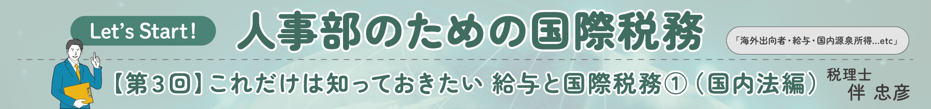人事部の皆さん、毎日の業務お疲れさまです。このシリーズでは、給与計算を担当する方々向けに、国際税務の一環としての源泉徴収の基礎的な考え方や取扱いをテーマにして、簡潔に説明していきます。今回は、非居住者(日本に住所がない社員)の源泉徴収に関係する日本の税法(国内法といいます)の基本的な仕組み見ていきます。