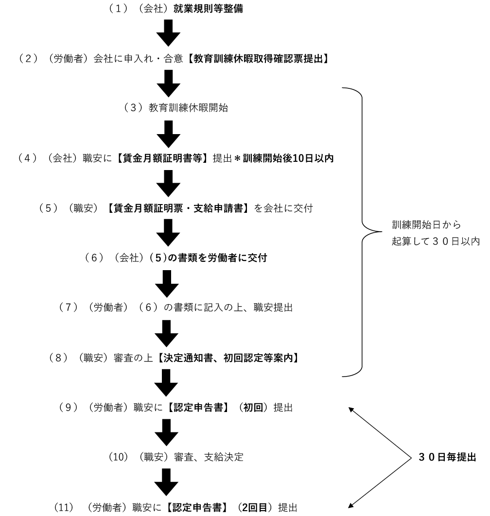 ⇒事前にハローワークで受給可能者に該当するか否かを労働者本人は確認しておくこと - 受講する訓練(講座)は下記のように決められており、かつ、会社が労働者に指示することはNG。