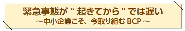 非常時に備える「未来への投資」の一歩としてBCP策定に取り組んでいきましょう。