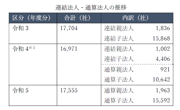 ※1 令和4 年度分については、連結納税制度から通算制度への移行期であり、連結法人と通算法人とを単純に合計しています。