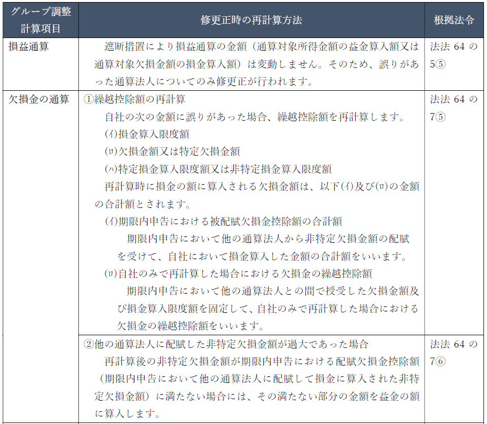 通算制度では、納税者及び課税庁双方の事務負担の軽減のため、修正申告又は更正(以下「修更正」といいます。)による再計算に関して独自の規定が設けられています。