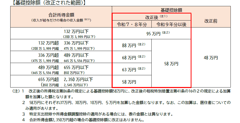 ※本稿中の表はすべて国税庁ホームページ「令和7年度税制改正による所得税の基礎控除の見直し等について(源泉所得税関係)」のパンフレットより引用しています。