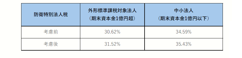 なお、防衛特別法人税考慮前と考慮後の法定実効税率の差は下記の通りです。