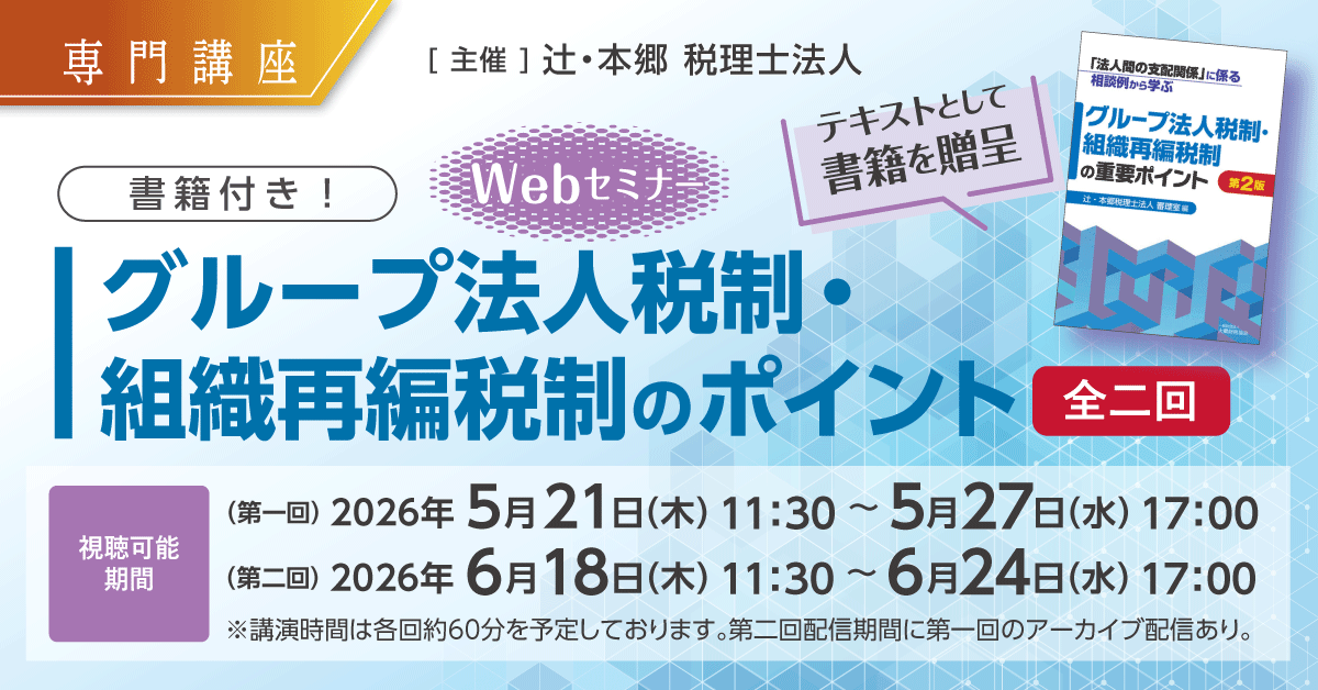【専門講座】書籍付き! グループ法人税制・組織再編税制のポイント(全二回)