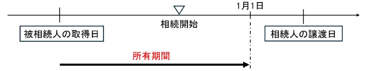 相続や遺贈により取得した財産を譲渡した場合の取得日は、被相続人が取得した日をそのまま相続人に引き継ぐものとされています。そのため、被相続人が取得した日から相続人が譲渡した年の 1 月 1 日までの所有期間で譲渡所得の区分を判定します。