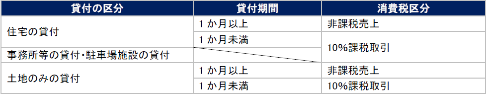 保有時の消費税は、対象となる不動産の貸付区分によって課税対象となるかどうかが異なります。