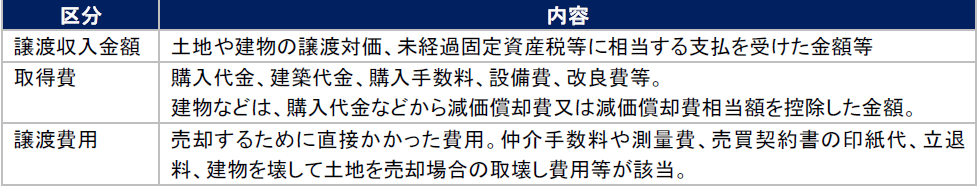 譲渡所得は、譲渡収入金額から取得費と譲渡費用を差し引いて計算します。